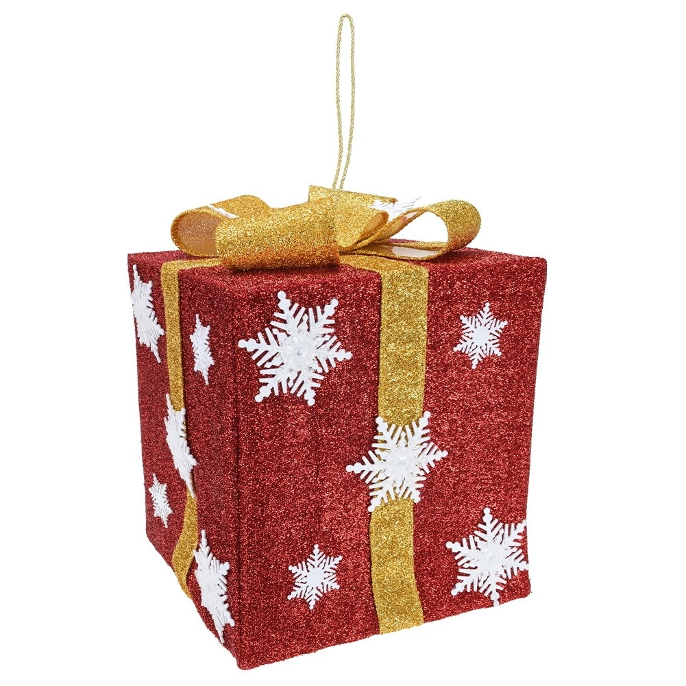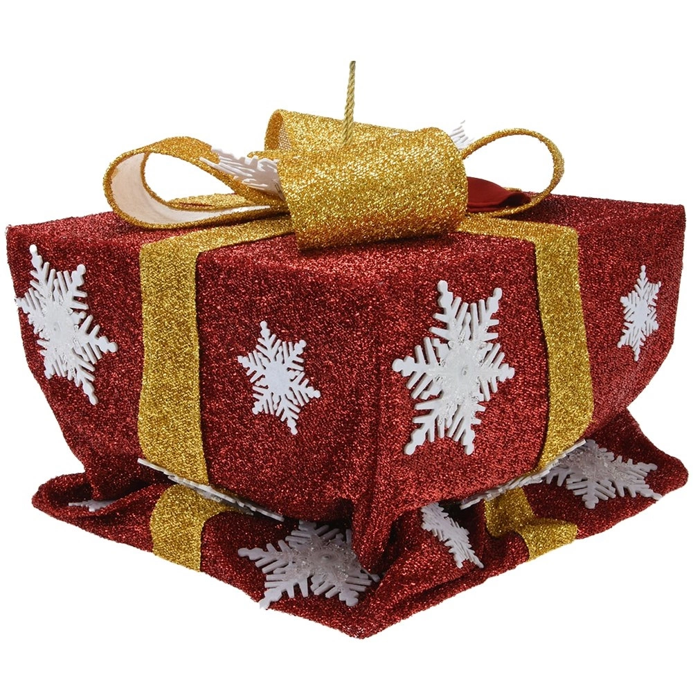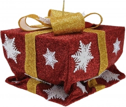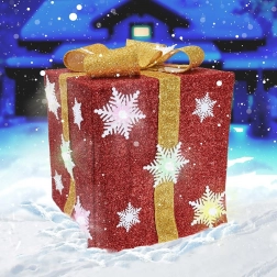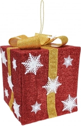 Vytvořte si doma i na zahradě dokonalou sváteční atmosféru se svítícím dárkem v sytě červené barvě, zdobeným bílými sněhovými vločkami a zlatou mašlí. Integrované LED diody (14 ks) s barevnou proměnou rozsvítí dekoraci jemným, atraktivním světlem. Díky skládací konstrukci z kovu s dekorativním povrchem je ozdoba robustní a zároveň snadno uskladnitelná.