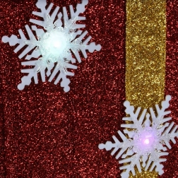 Červený glitter povrch, bílá vločková výzdoba a zlatá mašle zajišťují luxusní vzhled, který zaujme na první pohled.