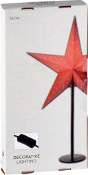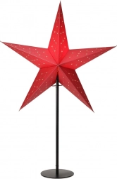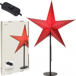 Stylová stolní lampa ve tvaru vánoční hvězdy v 3D provedení dodá interiéru sváteční atmosféru a útulné světlo. Robustní hvězda z pevné kartonáže v červené barvě na kovovém černém stojanu je vysoká 70 cm a průměr hvězdy je 45 cm. Disponuje síťovým napájením, kabelem 1,9 m a spínačem. Vhodná pro žárovku E14 (není součástí balení).