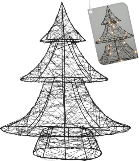 Designový, kovový vánoční stromeček v černé barvě s jemně propletenými drátky a teplým bílým světlem LED vytvoří ve vašem domově příjemnou, sváteční atmosféru. Díky kompaktní velikosti 40 cm se hodí do obývacího pokoje, ložnice i kanceláře.