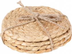 Podtácky jsou ručně splétané z měkké juty v přírodní barvě. Materiál je lehký, odolný a dodá stolování rustikální, boho vzhled.