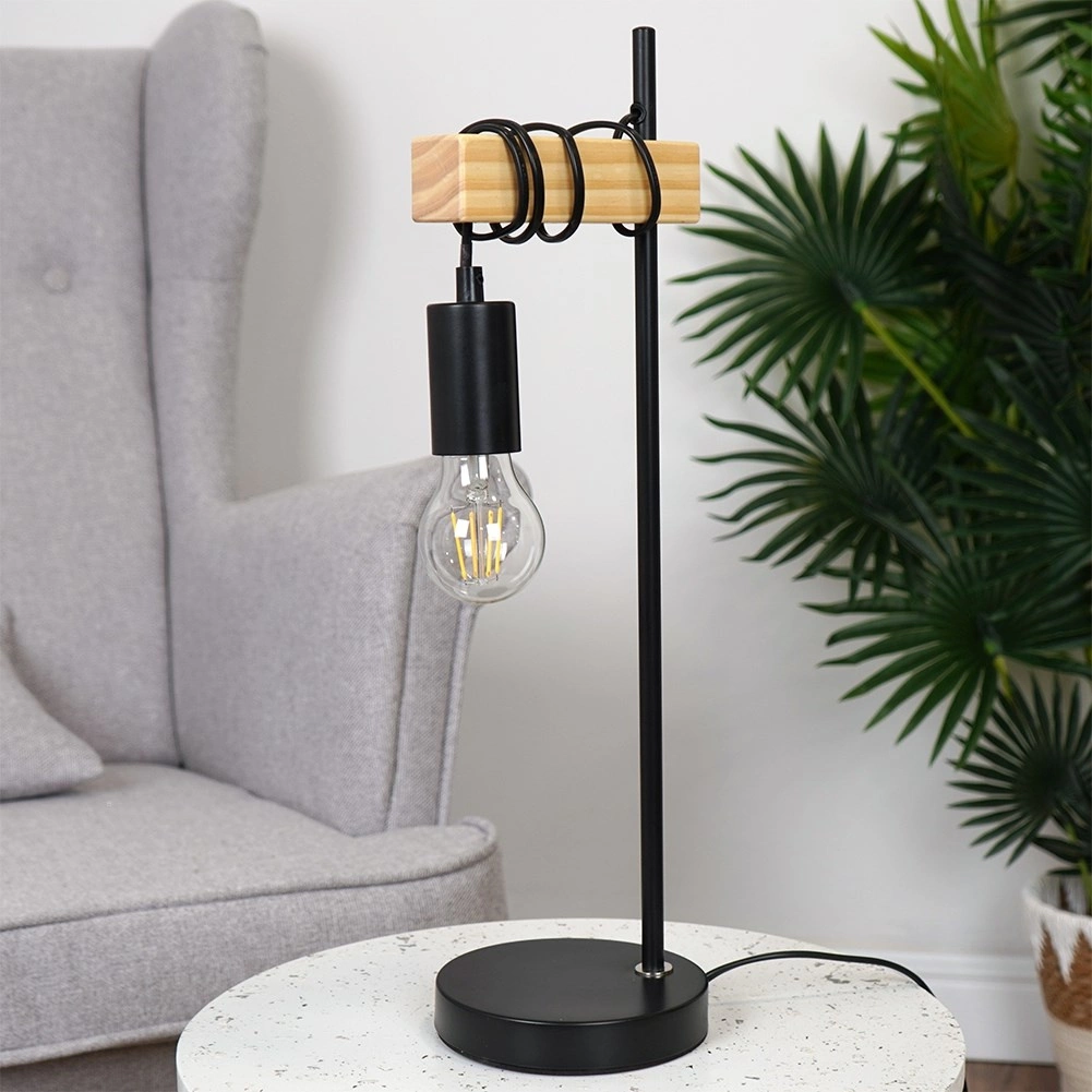 Tato moderní stolní lampa v černé matné barvě s dřevěným prvkem skvěle doplní interiéry ve stylu loft, skandinávském i moderním. Díky kombinaci kovu a přírodního dřeva působí elegantně a nadčasově, přičemž poskytuje příjemné ambientní i pracovní světlo.