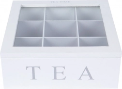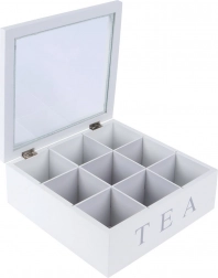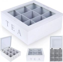 Box je vyroben z odolné MDF a má 9 oddělených přihrádek pro různé druhy a příchutě. Robustní panty zajišťují pohodlné otevírání i zavírání. Skvělé řešení pro domácnost, kancelář i gastronomii – a také praktický tip na dárek pro milovníky čaje.