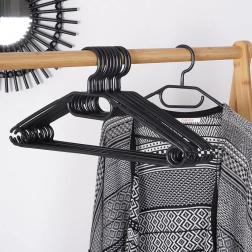 Každý věšák má rozměry 41 × 21 × 0,5 cm a je vyroben z odolného plastu pro dlouhou životnost. Praktické zářezy a otvory pomáhají bránit sklouzávání oděvů a šetří místo. Ideální do domácnosti i prodejen, pro efektivní organizaci skříně a udržení pořádku.