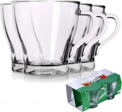 Praktická sada čtyř skleněných hrnků s uchem o objemu 280 ml pro každodenní pití kávy, čaje i studených nápojů. Vyrobené z kvalitního, silného skla, které je transparentní, odolné vůči teplotám, vhodné do myčky a použitelné v mikrovlnné troubě. Univerzální tvar a pohodlné ucho pro bezpečný úchop při horkých nápojích.
