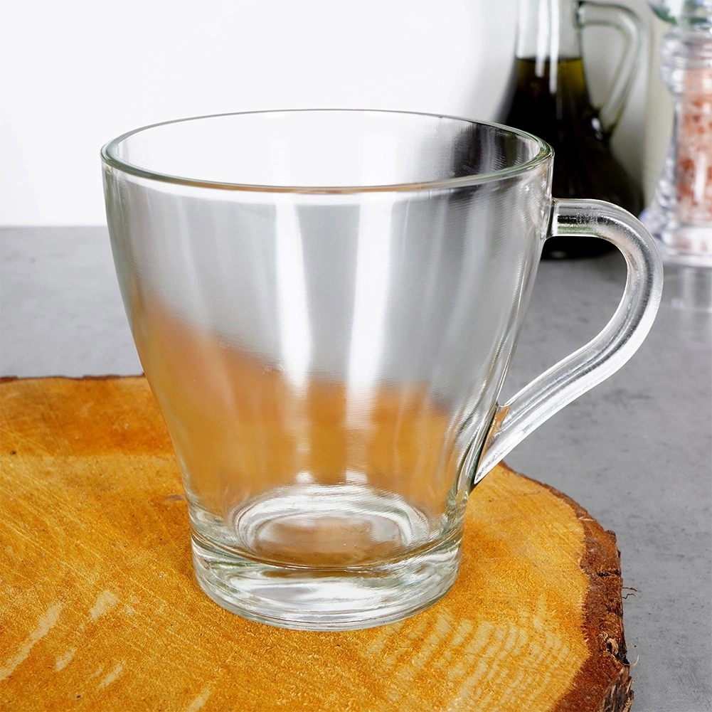 Skleněné hrnky s uchem o objemu 280 ml jsou ideální volbou pro každodenní podávání horkých i studených nápojů. Díky čirému, pevnému sklu vynikne barva kávy, čaje, limonády nebo vody. Klasický tvar se snadno kombinuje s jakýmkoli nádobím a působí elegantně v domácnosti i v gastronomii.