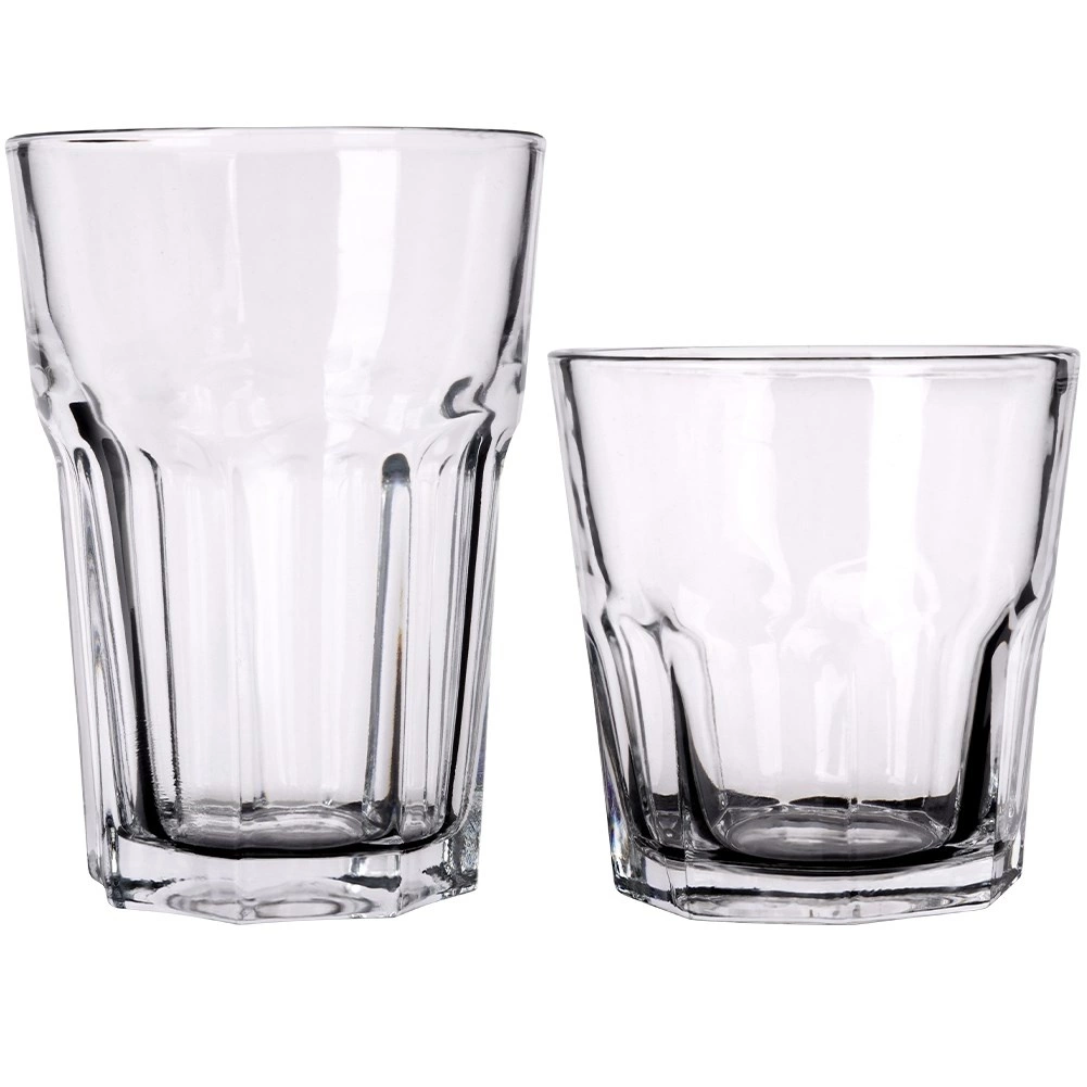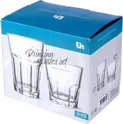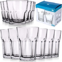 Praktická sada dvanácti sklenic ve dvou velikostech pro každý den. Obsahuje 6 menších sklenic 230 ml a 6 větších 330 ml z čirého, odolného skla s efektním fazetovým zdobením. Jsou univerzální pro vodu, džusy, limonády i drinky, stabilní díky silnému dnu a vhodné do myčky pro snadnou údržbu.