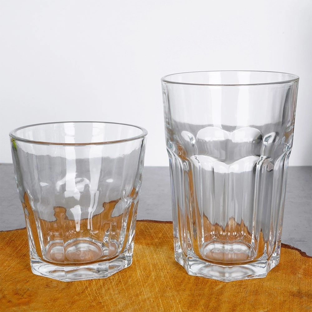 Čiré, pevné sklo s fazetovým vzorem zajišťuje stabilitu, odolnost a atraktivní vzhled nápojů.
