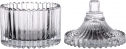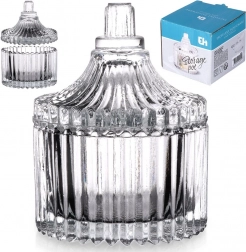 Stylová skleněná cukřenka s víčkem v kompaktních rozměrech 6,5 × 9 cm a objemu 80 ml je skvělou volbou pro každodenní použití i slavnostní příležitosti. Žebrované zdobení dodává nádech vintage elegance a průhledné sklo umožňuje kontrolu obsahu.