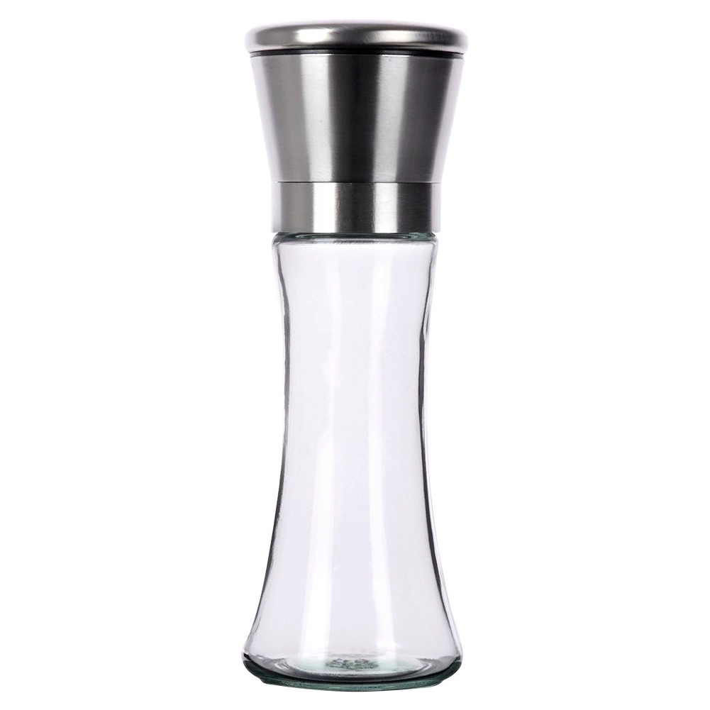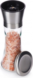 Elegantní ruční mlýnek na sůl, pepř a další koření s výškou 19 cm kombinuje čiré sklo a nerezovou ocel. Díky keramickému mlecímu mechanismu spolehlivě namele i tvrdá zrna a pomocí plynulé regulace hrubosti si nastavíte přesně takovou texturu, jakou potřebujete. Praktická ochranná krytka brání vysypávání zbytků a udržuje kuchyň v čistotě.