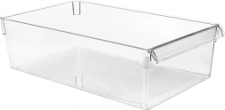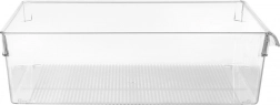 Praktický a odolný průhledný organizér do lednice o rozměrech 36 × 20,5 × 10 cm pomůže udržet potraviny přehledně srovnané. Díky integrovanému madlu je jejich vytažení snadné a rychlé. Box je vyroben z kvalitního plastu, je bezpečný pro potraviny, odolný a snadno se čistí. Ideální pro ovoce, zeleninu a další potraviny, bez víka pro okamžitý přehled.