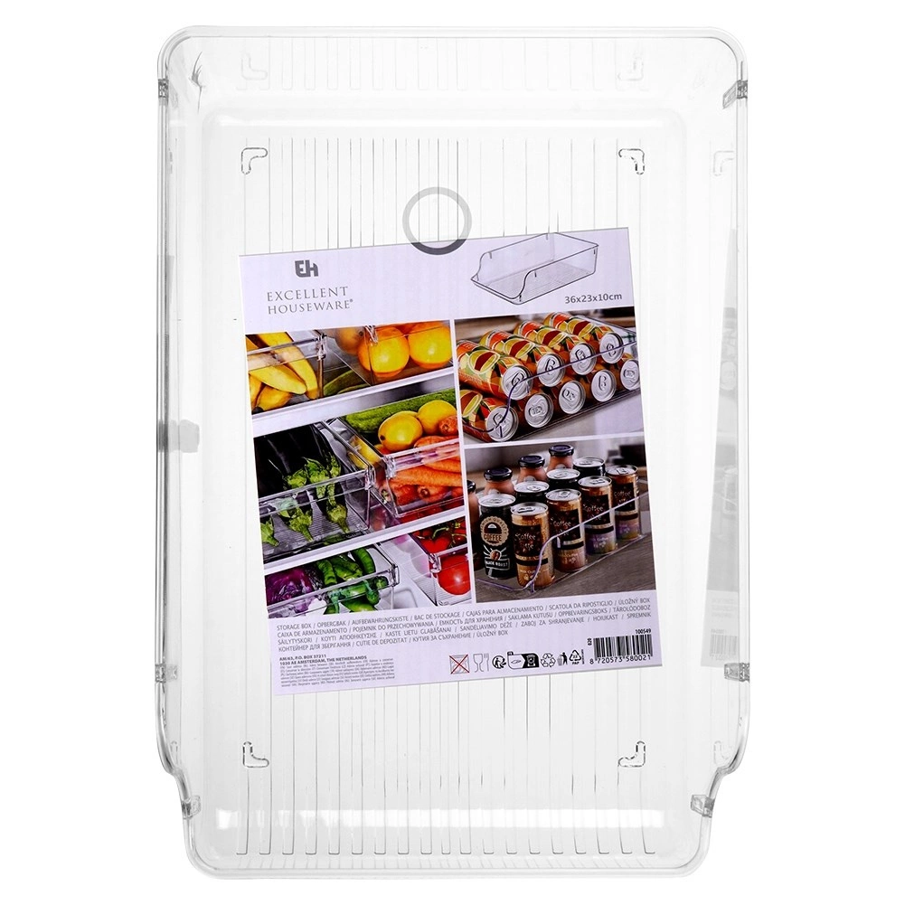 Praktický organizér do lednice o rozměrech 35 × 22,5 × 10 cm pomůže udržet potraviny přehledně uspořádané. Díky průhledným stěnám máte obsah vždy na očích a díky přednímu výřezu jej snadno vytáhnete. Box je z odolného a zdravotně nezávadného plastu, vhodný na ovoce, zeleninu i drobné potraviny a skvěle se hodí i do spíže či na polici.