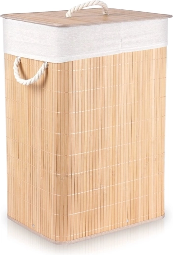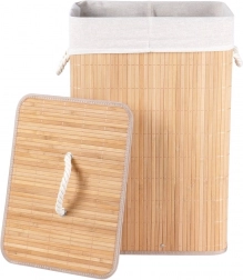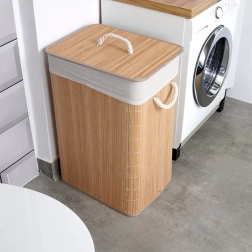 Koš je vyroben z pevných bambusových lamel a doplněn o lněnou vložku, kterou lze jednoduše vyjmout a vyprat. Robustní, přitom lehká konstrukce a provazové rukojeti umožní pohodlné přenášení i při větším naplnění.