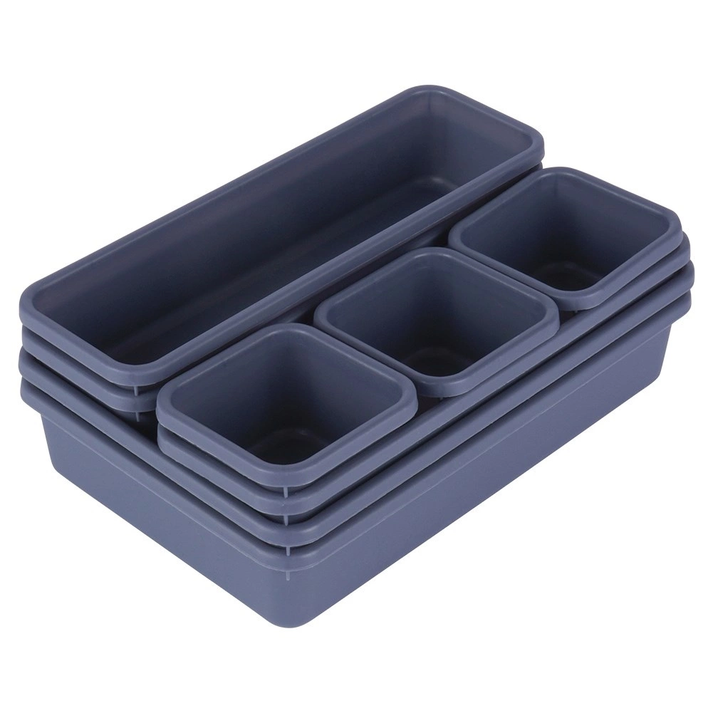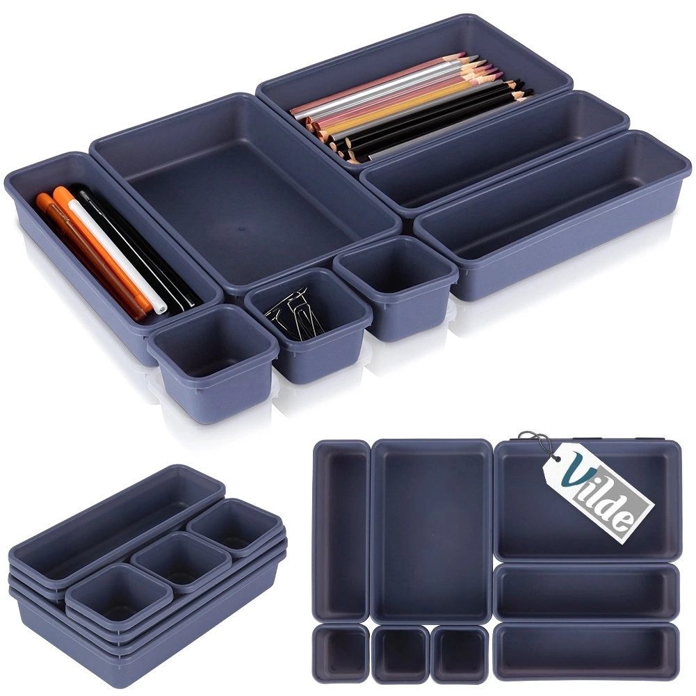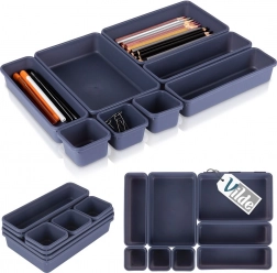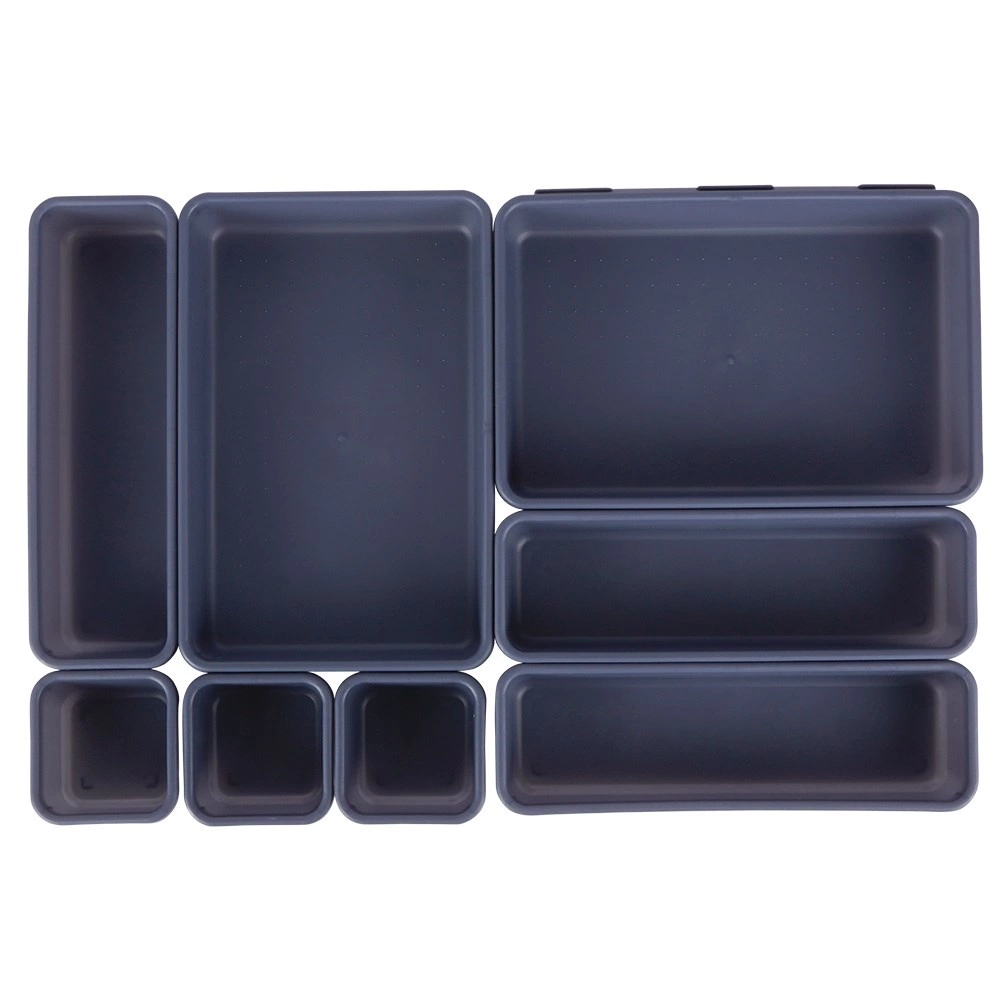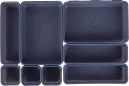 Udržte si pořádek v každé zásuvce díky setu 8 modulárních organizérů v grafitové barvě. Kombinujte misky různých velikostí, vytvářejte libovolné uspořádání a mějte vše vždy po ruce. Lehký a odolný plast, 3 praktické rozměry, snadné čištění a úsporné vkládání do sebe dělají z tohoto setu ideální řešení pro kancelář, koupelnu i šatník.