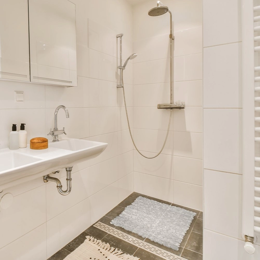 Bezpečnější sprchování každý den: tato průhledná protiskluzová podložka o rozměru 51 × 51 cm nabízí silné přilnutí pomocí přísavek, spolehlivou ochranu proti uklouznutí a odolnost vůči vodě a vlhkosti. Neutrální design se snadno sladí s každou koupelnou a chrání chodidla před studenými dlaždicemi.