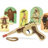 Postavte terče, natáhněte gumičku a vyzvěte rodinu nebo kamarády na přestřelku v obýváku. Kvalitní dřevěné provedení zajišťuje odolnost a dlouhou životnost hračky, zatímco atraktivní westernový design nadchne malé pistolníky.