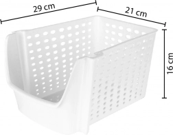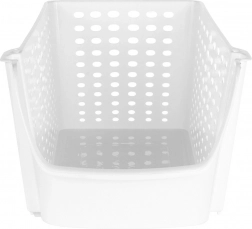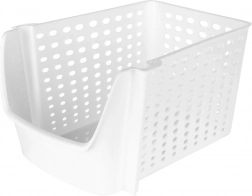 Univerzální bílý koš je skvělý pro přehledné uložení ovoce, zeleniny i dalších potravin. Perforace po stranách a na zadní straně zajišťuje ventilaci a lepší viditelnost obsahu, čímž pomáhá udržet suroviny déle čerstvé. Přední výřez umožňuje rychlý a pohodlný přístup k uloženým věcem.