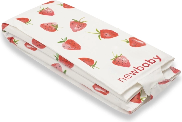 Podložka je vyrobena z kvalitní certifikované PVC fólie bez škodlivých látek, která je citlivá k dětské pokožce. Je velmi lehká, skladná a snadno se udržuje – stačí otřít vlhkým hadříkem. Jemné pastelové barvy a motiv jahůdek potěší rodiče i děti.