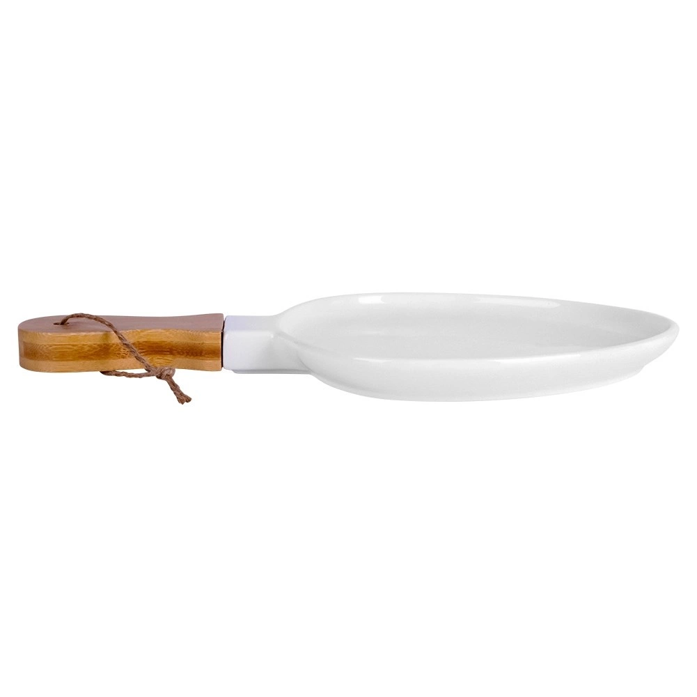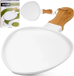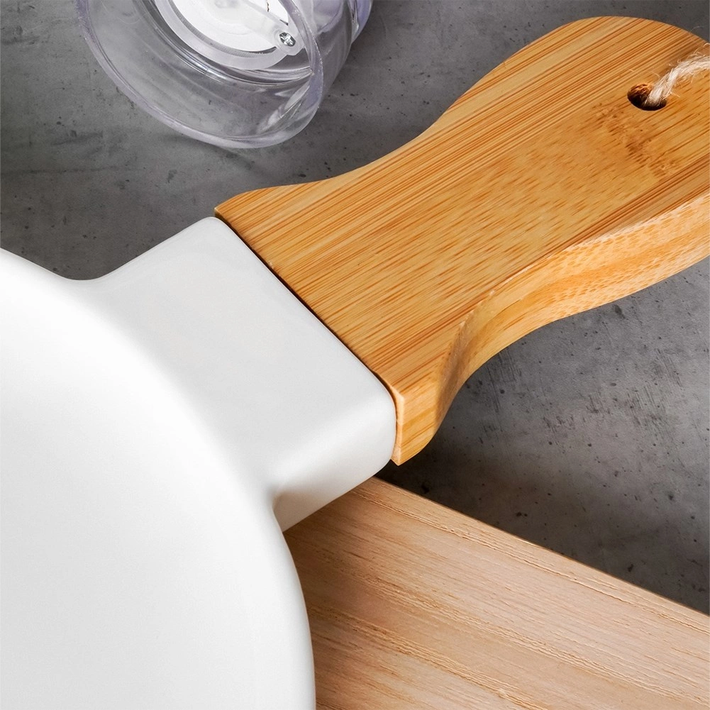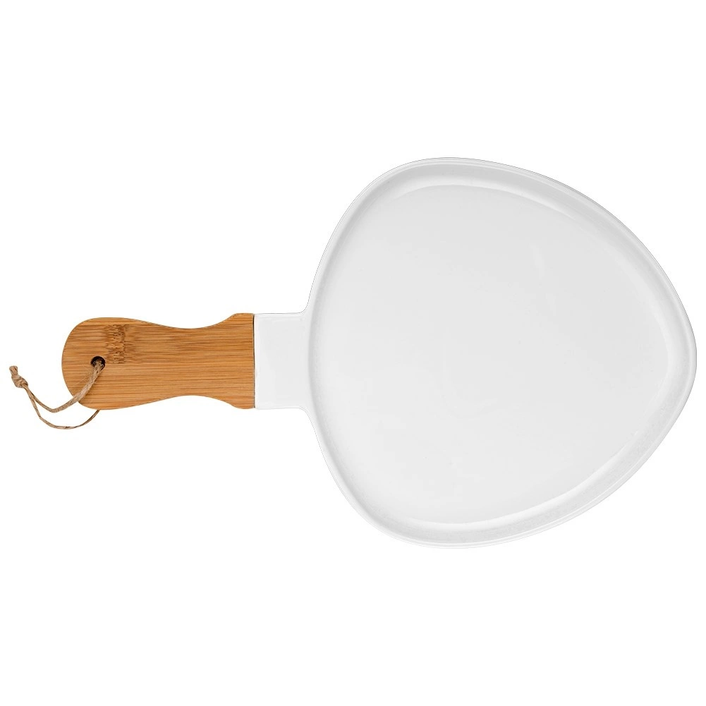 Díky pohodlnému úchopu s otvorem a šňůrkou se talíř snadno přenáší a můžete jej také zavěsit pro úsporu místa. Vyniká univerzálním využitím v domácnosti, restauraci i při speciálních příležitostech. Kombinace přírodní bambusové rukojeti a bílé glazované porcelány působí elegantně a reprezentativně.