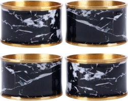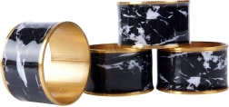 Dodejte svému stolování výjimečný šarm. Tyto kovové kroužky na ubrousky s lesklým zlatým lemováním a výrazným motivem černého mramoru jsou ideální pro slavnostní večeře, rodinná setkání i každodenní servírování. Opakovatelně použitelné, odolné a pečlivě zpracované.