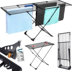 Chytré detaily zpříjemní každodenní použití: dvojice koleček umožní šetrné přesunutí bez poškrábání podlahy, po stranách najdete 8+8 speciálních úchytů na ramínka a drobnou bielizeň. Při maximálním rozložení získáte až 19 m sušicí plochy a nosnost 30 kg. Po složení má sušák jen 131 × 56 × 9 cm, takže se snadno schová za dveře či do koupelny.
