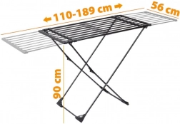 Univerzální sušák na prádlo s plynule roztažitelnou konstrukcí se přizpůsobí prostoru i množství prádla. Práškově lakovaný kov odolává vlhkosti, silné pruty se nedeformují a stabilní X-rám zaručí jistotu při sušení i těžších textilií. Vhodný do interiéru i exteriéru – na balkon, terasu či zahradu.