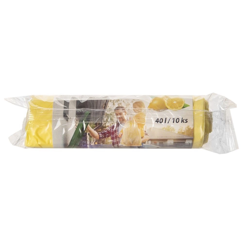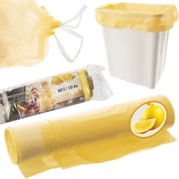 Praktické a odolné pytle na odpadky s citronovou vůní pro eliminaci nepříjemných pachů. Balení obsahuje 10 ks v roli, objem 40 l (60 × 55 cm), vyrobené z pevného HDPE s praktickou stahovací páskou pro hygienické zavázání a přenášení.
