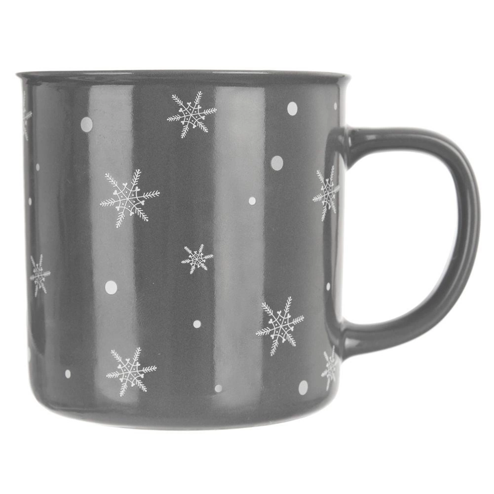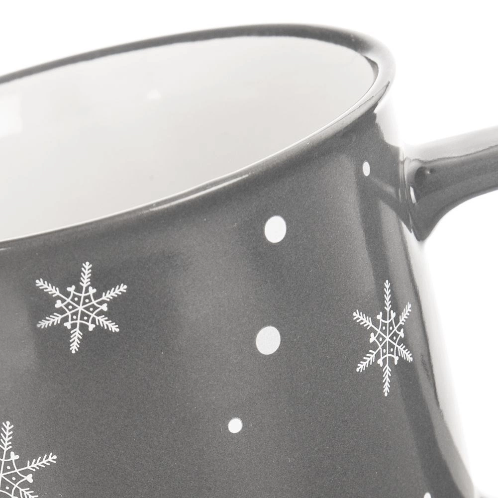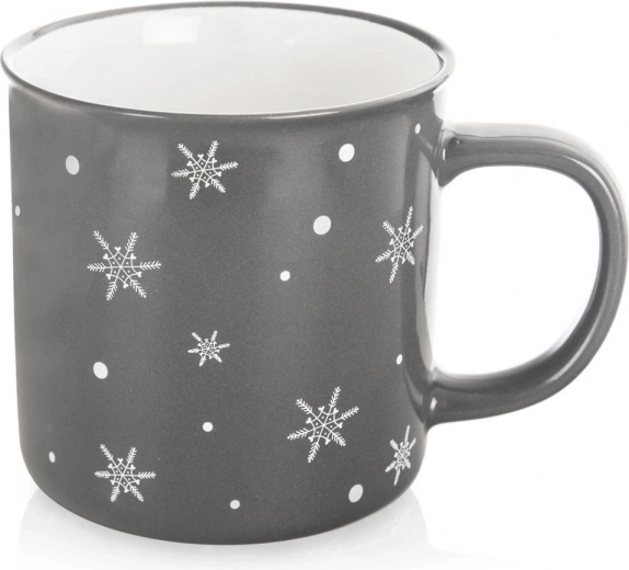 Stylový keramický hrnek o objemu 500 ml v tmavě šedé barvě s bílými sněhovými vločkami je ideální na čaj, kávu, kakao i bylinkové nápoje. Má pohodlné velké ucho, lze jej mýt v myčce a nápoje v něm ohřívat v mikrovlnce – perfektní volba na zimní a vánoční období i pro každodenní použití.