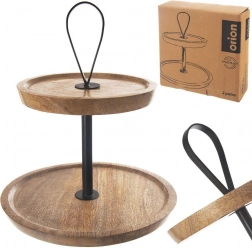 Dodejte svému stolování eleganci a řád. Dřevěná dvoupatrová etažér z mangového dřeva umožní efektně vystavit cupcakes, sušenky, dezerty, ovoce i slané kanapky. Díky dvěma úrovním s různými průměry snadno ušetříte místo na stole a přitom zachováte přehlednou prezentaci.