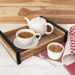 Obdélníkový tác z mangového dřeva v industriálním stylu LOFT kombinuje přírodní vzhled a funkčnost. Je ideální pro servírování kávy, čaje, dezertů i snídaní do postele, stejně jako pro stylové prezentace během oslav a cateringových akcí. Díky zvýšeným okrajům a pevným kovovým úchytům se pohodlně a bezpečně přenáší.