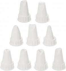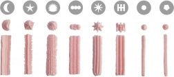 - 9 vyměnitelných špiček pro různé vzory – linky, hvězdičky, květy, vlnky i plnění.