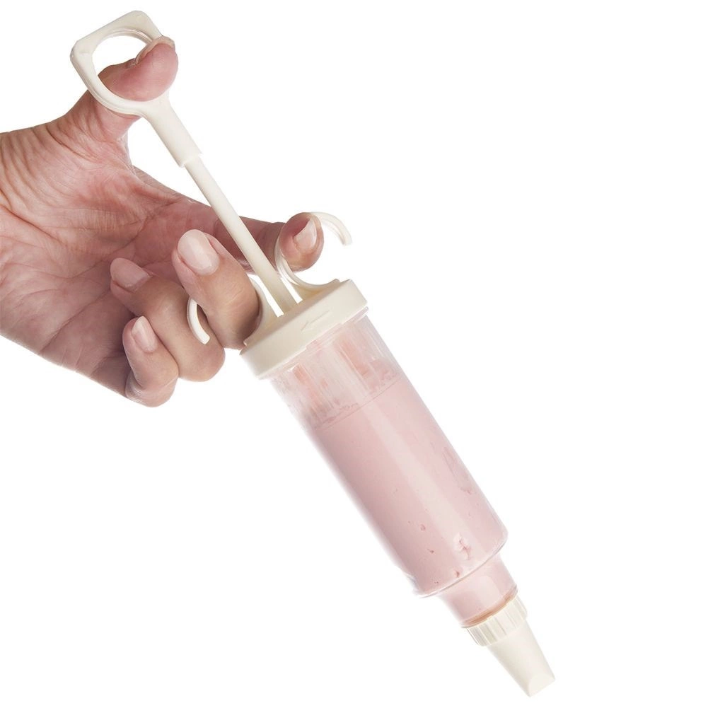 Univerzální dekorátor na dorty a cukroví se snadno plní krémem nebo šlehačkou a díky pístovému ovládání zaručuje rovnoměrné a čisté dávkování. Průhledný válec umožňuje mít pod kontrolou hladinu náplně, výměnné špičky pak nabídnou široké možnosti zdobení od jemných linií po bohaté hvězdičky.