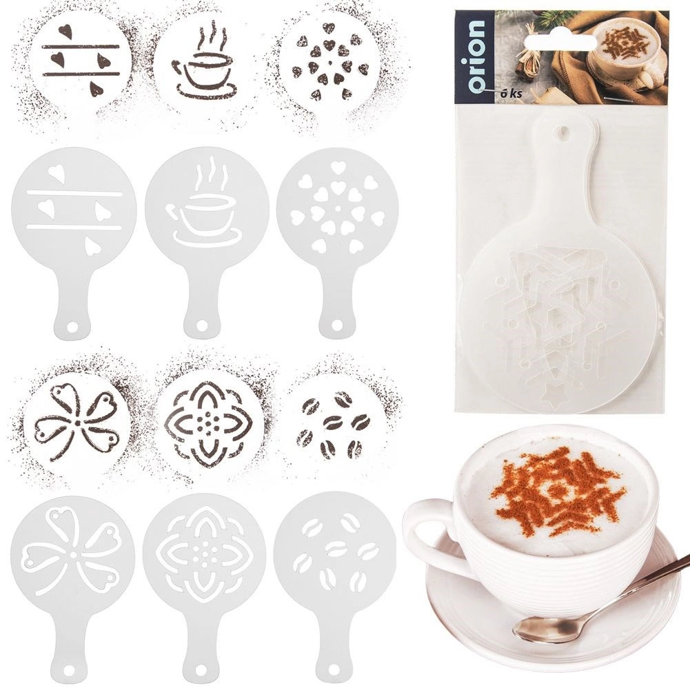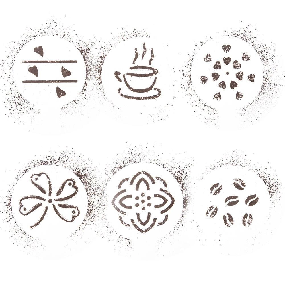 Sada šesti praktických šablon na kávu a dezerty vám umožní vytvářet rychlé a efektní dekorace bez zkušeností s baristickými technikami. Každá šablona má pohodlné držadlo pro přesné umístění nad šálkem či moučníkem a otvor pro snadné zavěšení v kuchyni.