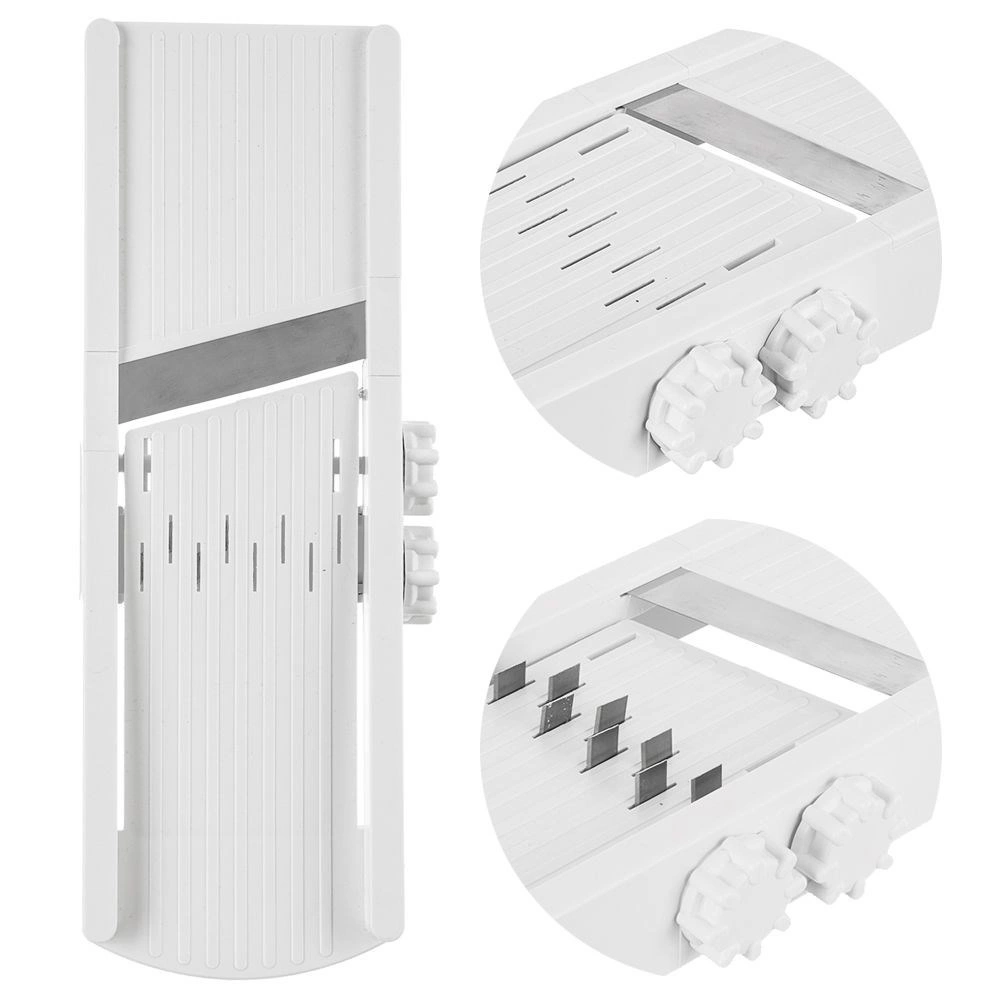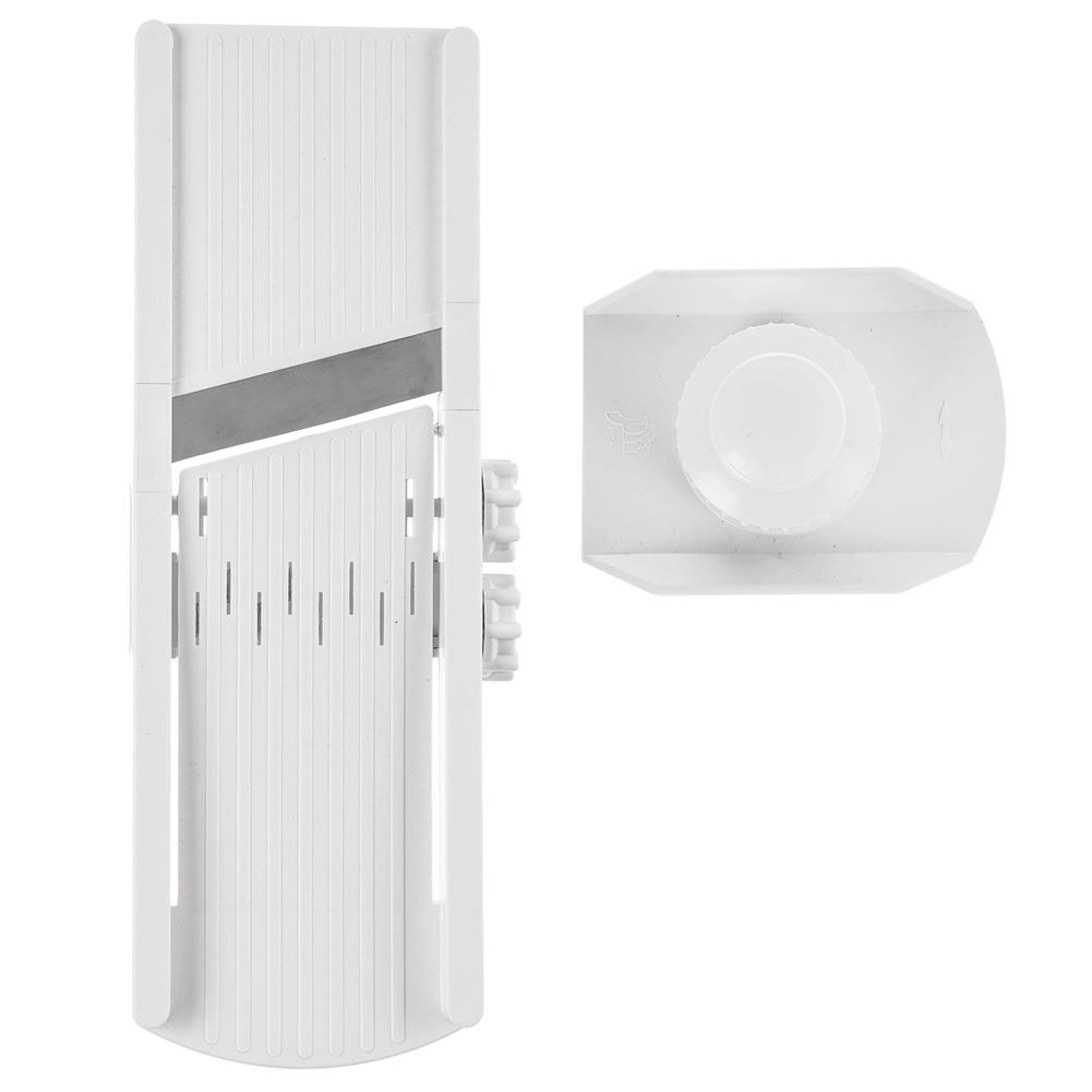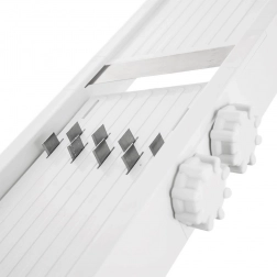 Ostré čepele z nerezové oceli zaručují čistý a rovnoměrný řez, zatímco ochranný držák udrží suroviny pevně na místě a minimalizuje riziko poranění. Náčiní je snadno omyvatelné a vhodné do myčky nádobí, takže údržba je otázkou chvilky.