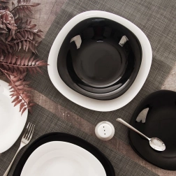 Lesklý bílý povrch a zaoblené rohy dodají prostřenému stolu elegantní, minimalistický vzhled vhodný pro každou příležitost.