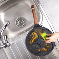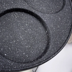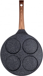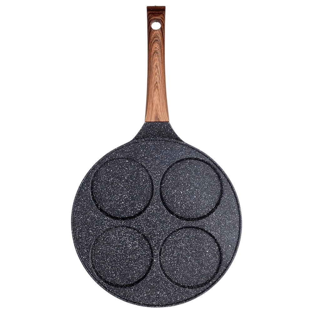 Stylová pánev z linie BLACK&WOOD v populární kombinaci černého kamenného vzhledu a dřeva usnadní přípravu vajec, lívanečků i mini pancakes. Čtyři vyhrazené otvory pomohou udržet ideální tvar a velikost, zatímco hliníkové tělo s rovnoměrným rozvodem tepla zkracuje dobu vaření a šetří energii.