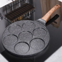 Připravte si perfektně kulaté volská oka, lívance nebo mini palačinky – tato pánev s 7 důlky vám usnadní každé snídaňové menu. Granitová nepřilnavá vrstva v černo‑šedém „stone“ vzhledu zabraňuje připalování a umožňuje zdravější přípravu s minimem oleje. Stylová kombinace BLACK&WOOD skvěle zapadne do moderní kuchyně.