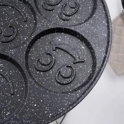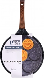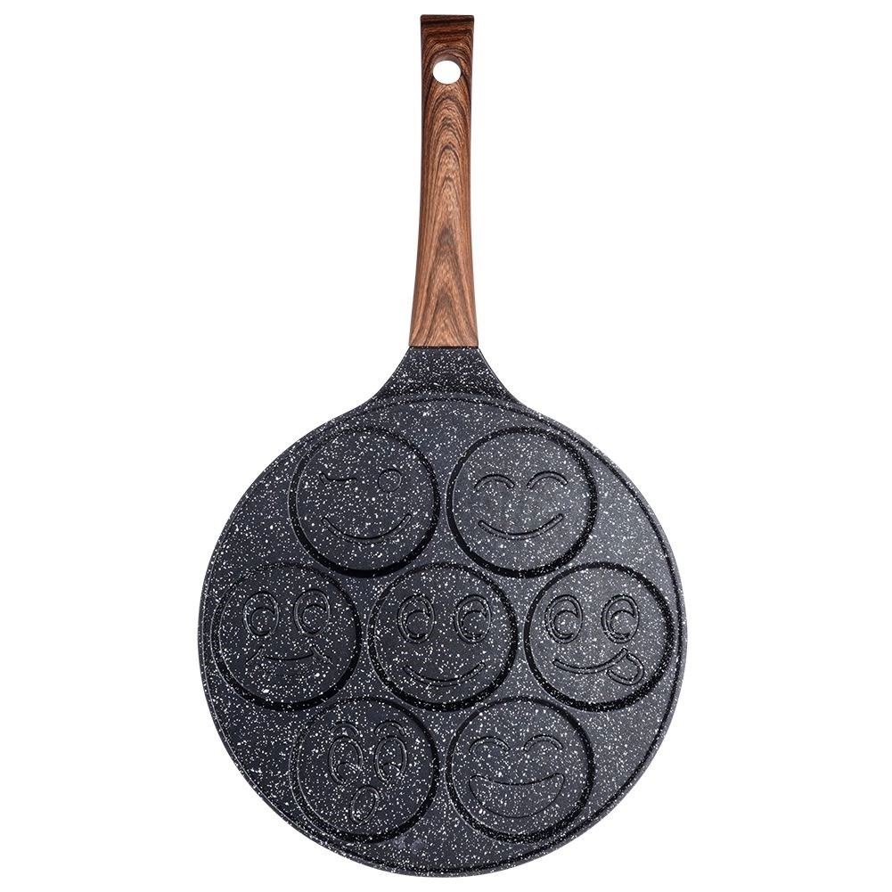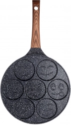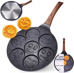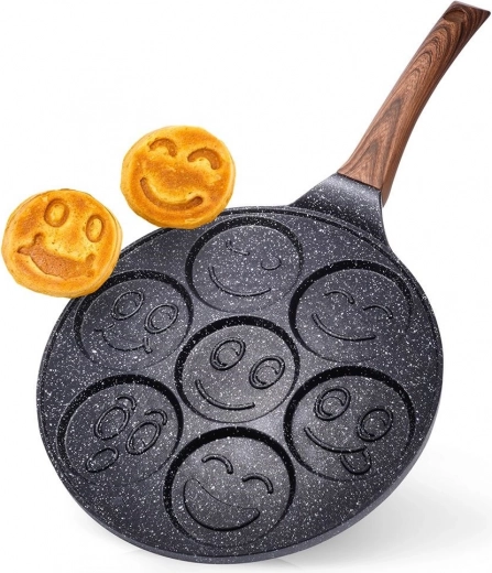 Objevte radost z vaření s pánví na vejce a lívance, která kombinuje moderní vzhled BLACK & WOOD s maximální funkčností. Sedm hlubších jamek s reliéfními usměvavými obličeji vytvaruje dokonale kulaté porce a dodá snídaním hravý vzhled. Granitová nepřilnavá vrstva umožňuje smažit s minimem oleje a usnadňuje čištění.