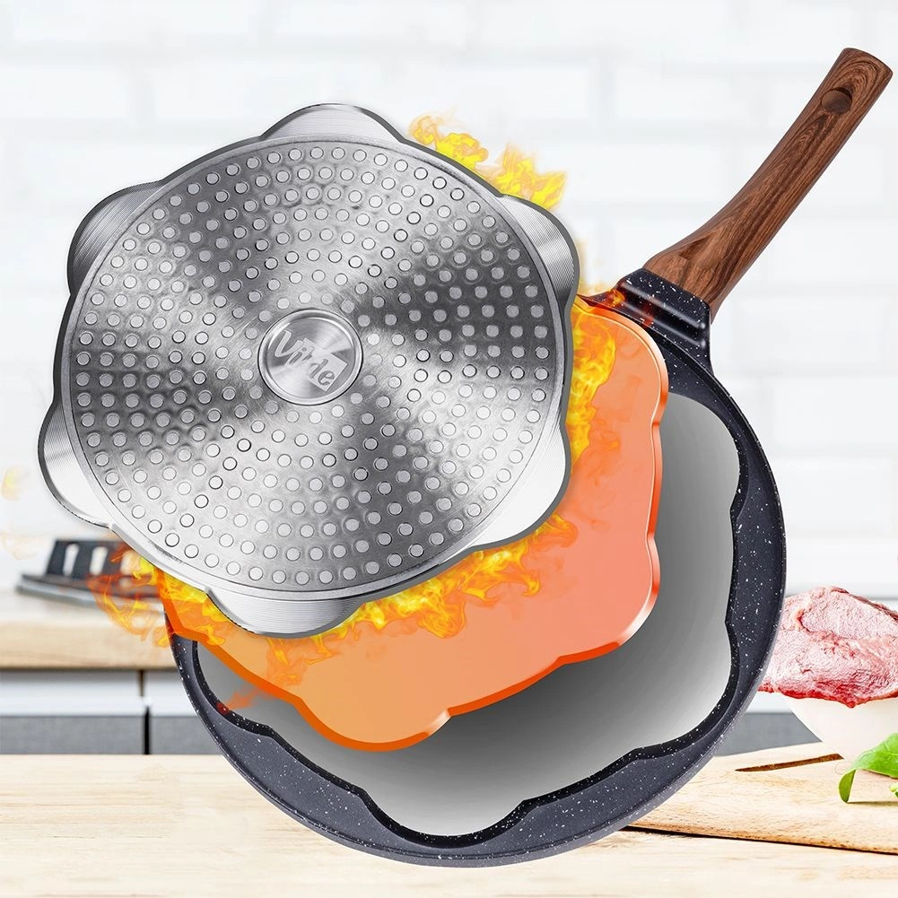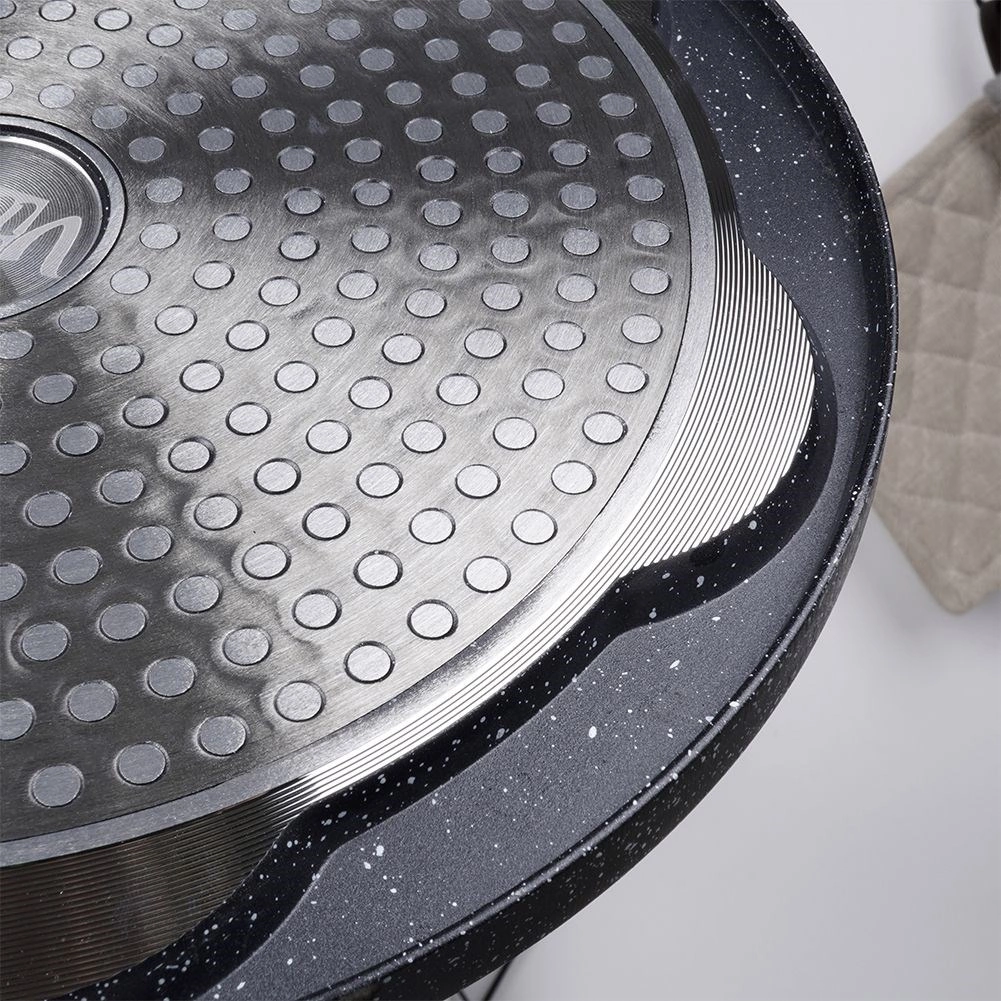 Odolná granitová vrstva brání připalování, umožní smažit s minimem tuku a výrazně usnadňuje čištění po vaření.