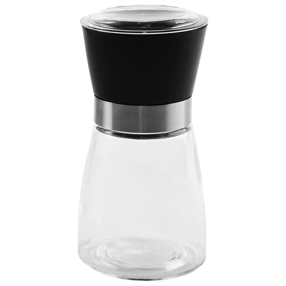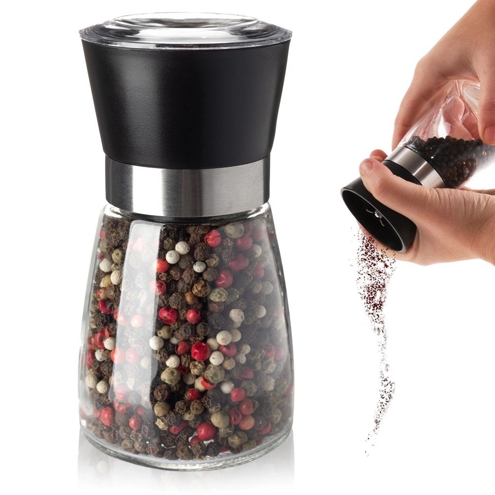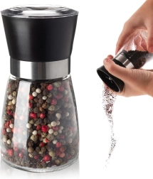 Praktický ruční mlýnek na pepř, sůl a další koření se skleněným tělem o výšce 13 cm a průměru 6,5 cm. Nabízí keramický mlecí mechanismus pro plynulé mletí, nastavitelnou hrubost pomocí otočného regulátoru a víčko proti sypání zbytků. Transparentní sklo ukáže stav zásob a elegantní design skvěle zapadne do každé kuchyně i jídelny.