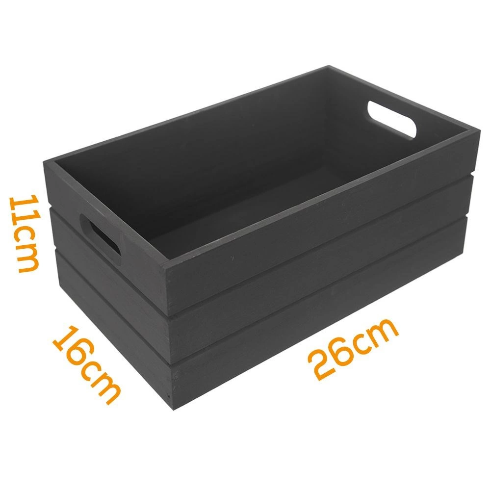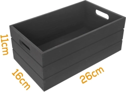 Praktická dřevěná bedýnka v elegantní černé barvě pomůže udržet pořádek v každé místnosti. Je vyrobená z odolného dřeva, má integrované úchyty pro snadné přenášení a kompaktní rozměry 26 × 16 × 11 cm. Skvěle se hodí na kosmetiku, kancelářské potřeby, koření, kuchyňské pomůcky i drobné oblečení. Univerzální, odolná a dekorativní – dokonale zapadne do klasického i moderního interiéru.