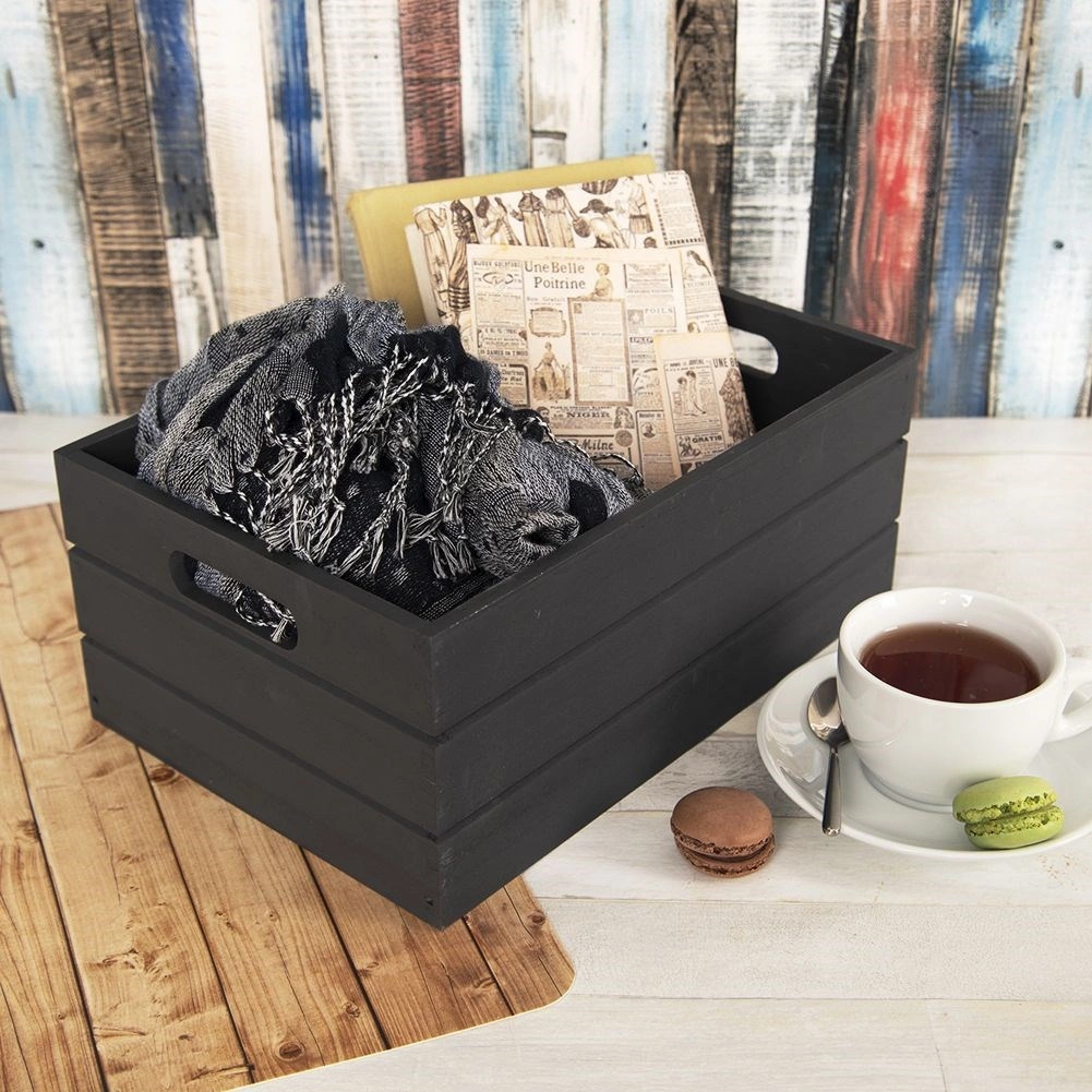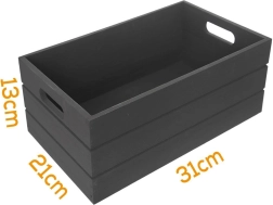 Univerzální dřevěná krabička v elegantním černém provedení pomůže udržet pořádek v každé místnosti. Díky pevnému dřevu a dvěma bočním otvorům se snadno přenáší a odolá každodennímu používání. Hodí se na polici, komodu i pracovní stůl.