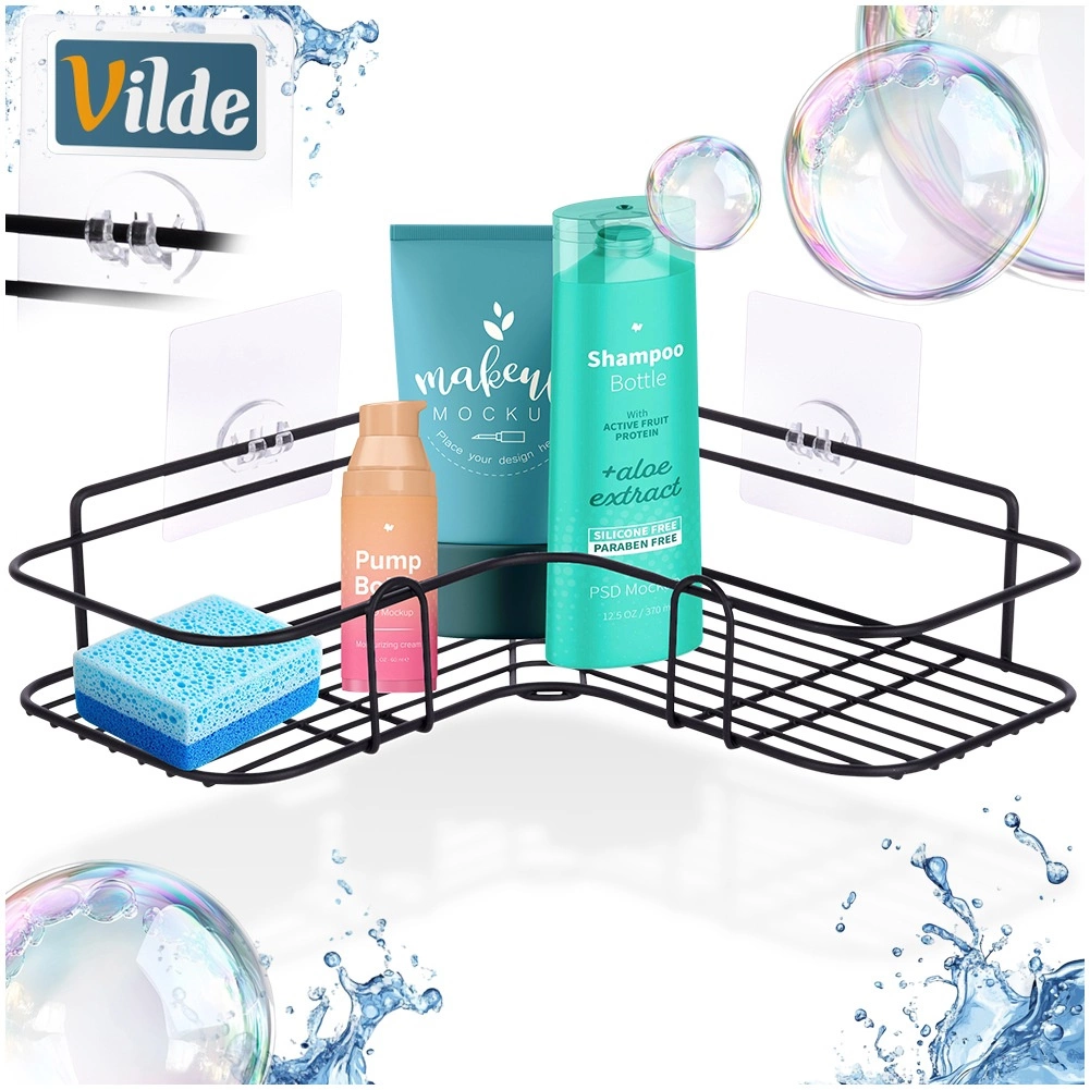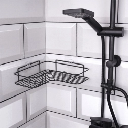 Samolepicí rohová police do sprchy je skvělým řešením pro každou koupelnu v moderním loftovém stylu. Díky robustní kovové konstrukci s matně černým práškovým lakem je pevná, odolná a nenáročná na čištění. Hodí se pro uložení šamponů, gelů, kartáčů i houbiček a lze ji využít i v kuchyni jako polici na koření. Součástí jsou průhledné samolepicí podložky pro rychlou instalaci bez poškození obkladů.