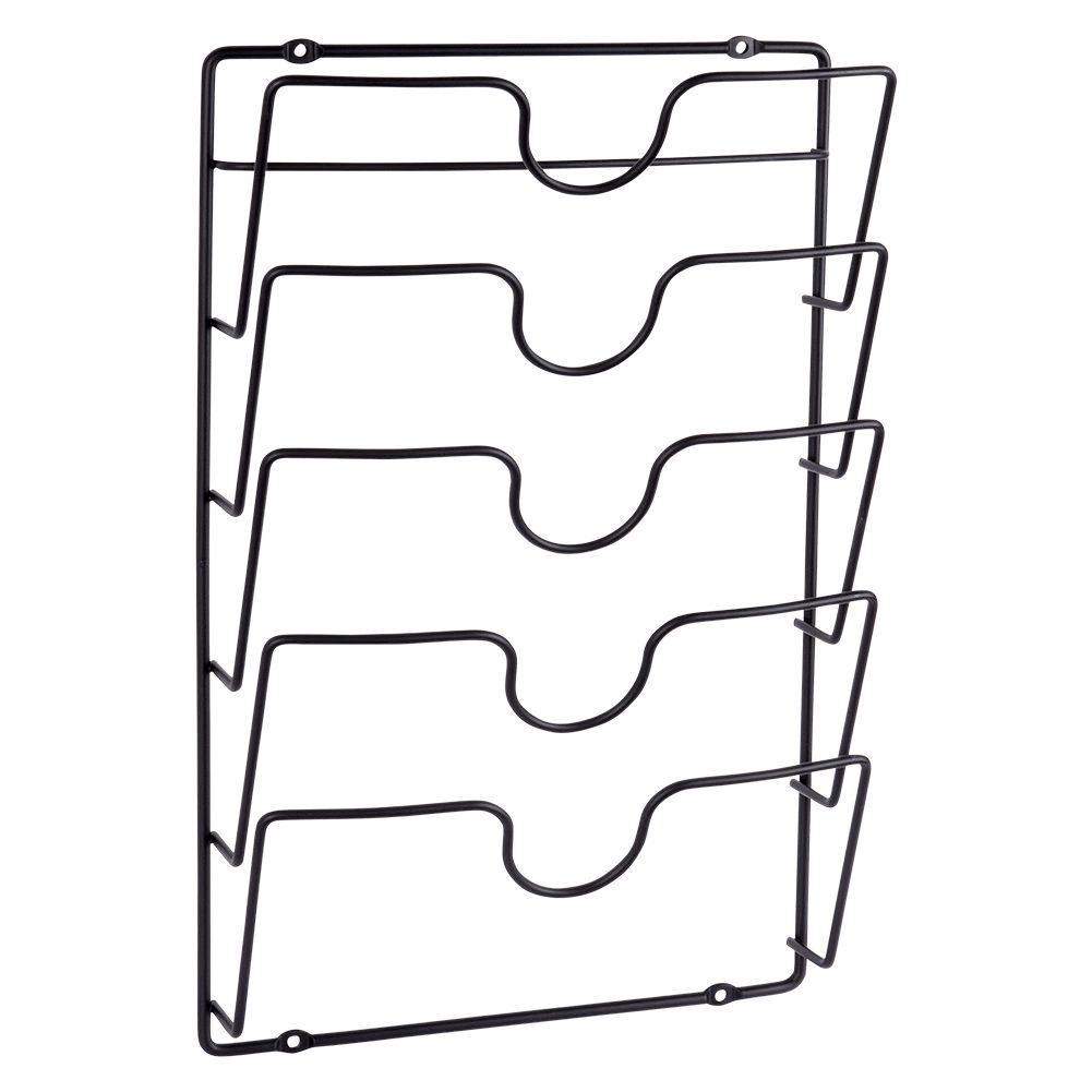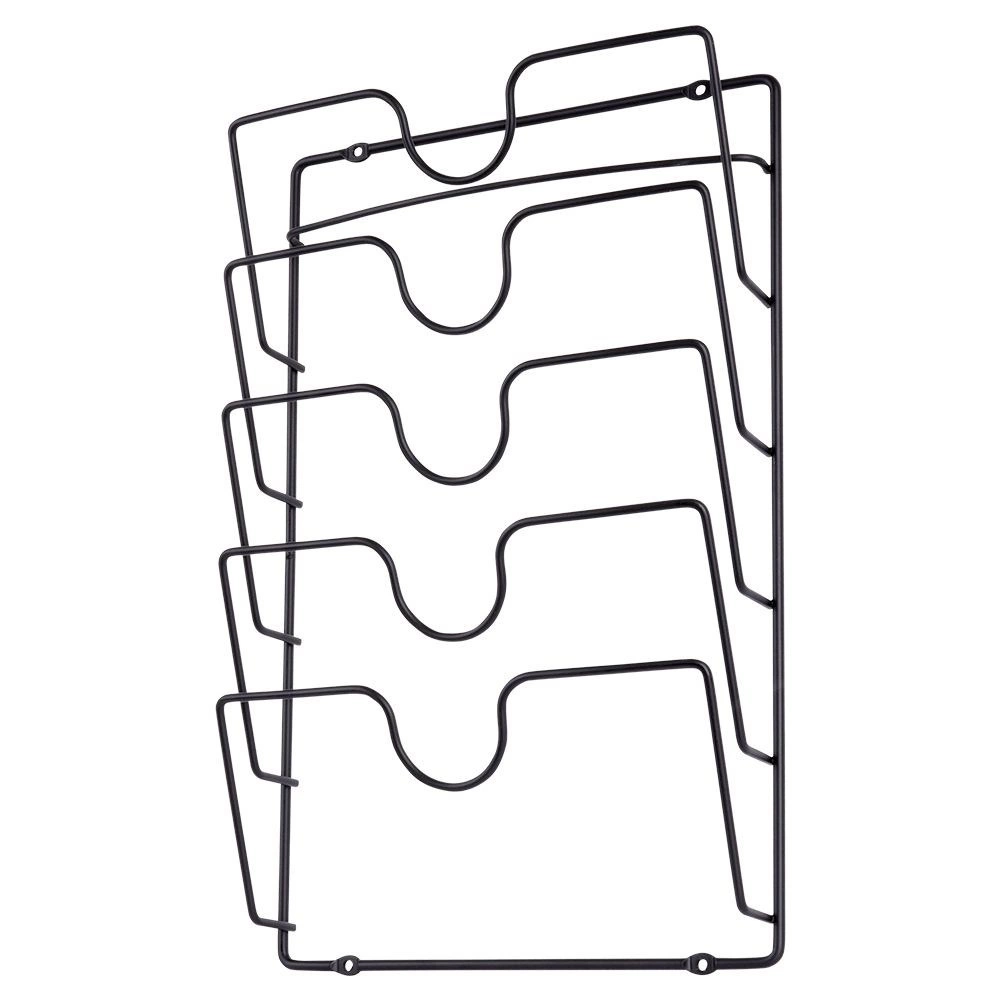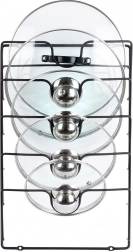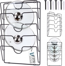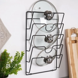 Praktický kovový držák na poklice s kapacitou až pro 5 vík udrží vaši kuchyni dokonale přehlednou. Snadno jej připevníte na zeď nebo uvnitř skříňky, čímž šetří místo na pracovní desce. Odolná kovová konstrukce s práškovým lakem v matné černé zaručuje dlouhou životnost a moderní vzhled.