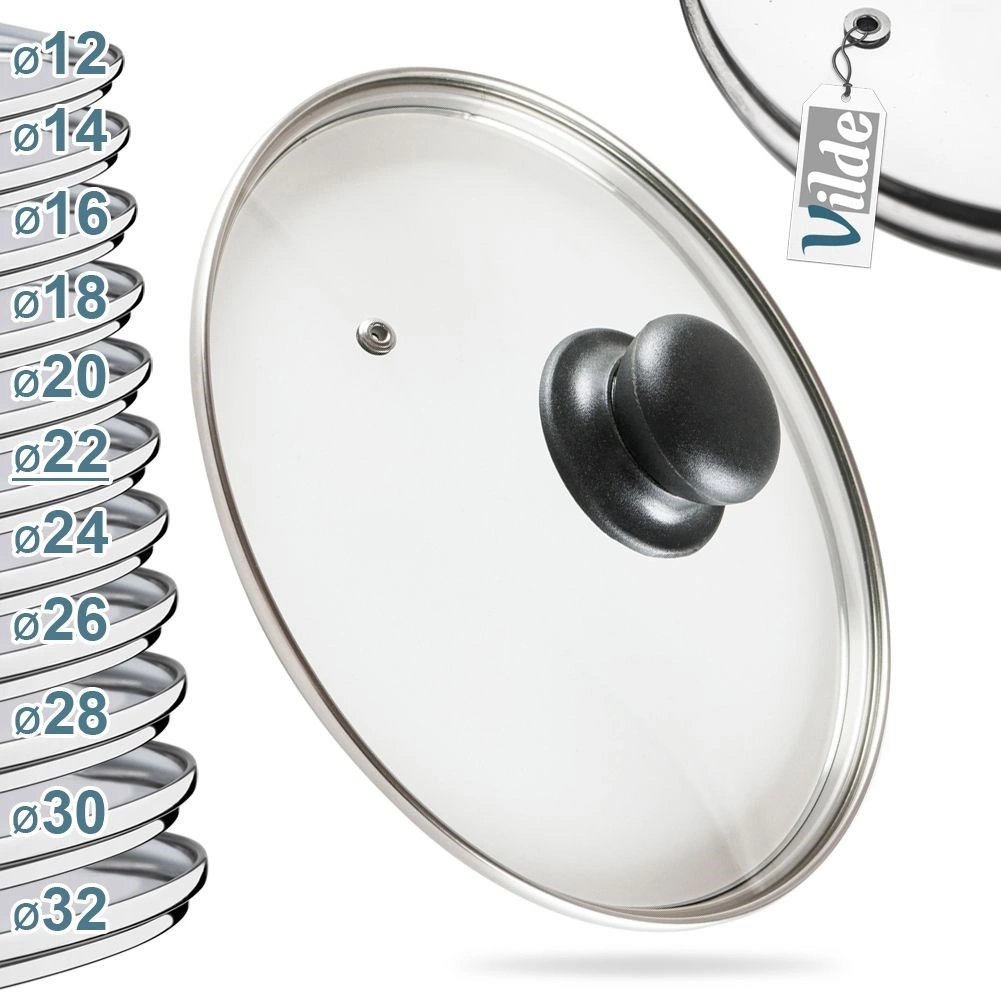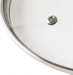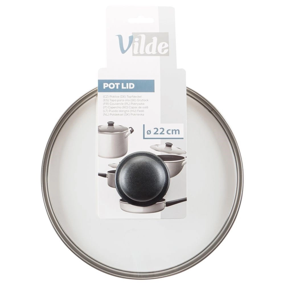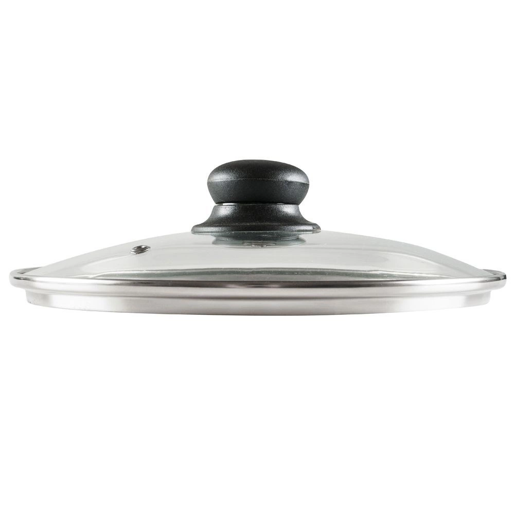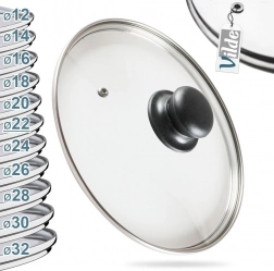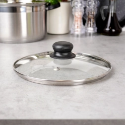 Univerzální skleněná poklice o průměru 22 cm pro hrnce, pánve a rendlíky. Díky žáruvzdornému sklu a nerezovému lemu je odolná do 200 °C, má odvětrávací otvor, vysoký okraj pro těsné dosednutí a pohodlné madlo. Transparentní provedení umožní kontrolu vaření bez nadzvedávání a urychlí přípravu jídel bez zbytečného prskání.