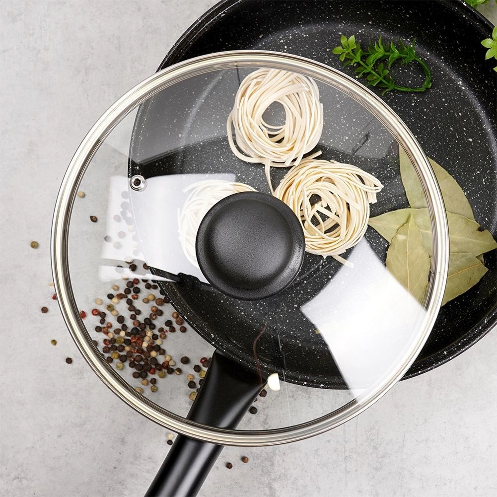 Díky odvětrávacímu otvoru uniká přebytečná pára, mírně vypouklý tvar podporuje cirkulaci horkého vzduchu a pokrmy se tak rychleji uvaří či usmaží. Vysoký rant zaručí těsné přilnutí k okraji nádoby, čímž se snižuje prskání vody a tuku a jídlo déle udrží teplotu.
