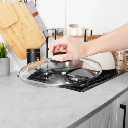 Praktická poklice z žáruvzdorného, čirého skla je ideální pro hrnce, pánve a rendlíky o průměru 28 cm. Odolný nerezový lem zvyšuje životnost, zatímco ergonomické madlo z odolného materiálu usnadňuje manipulaci. Díky průhlednosti máte nad vařením plnou kontrolu bez zbytečných tepelných ztrát.