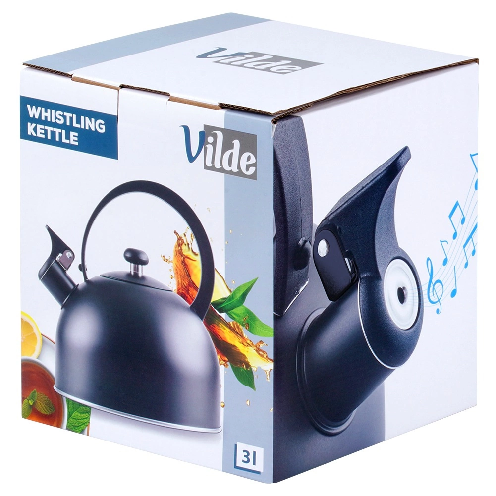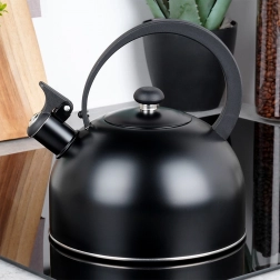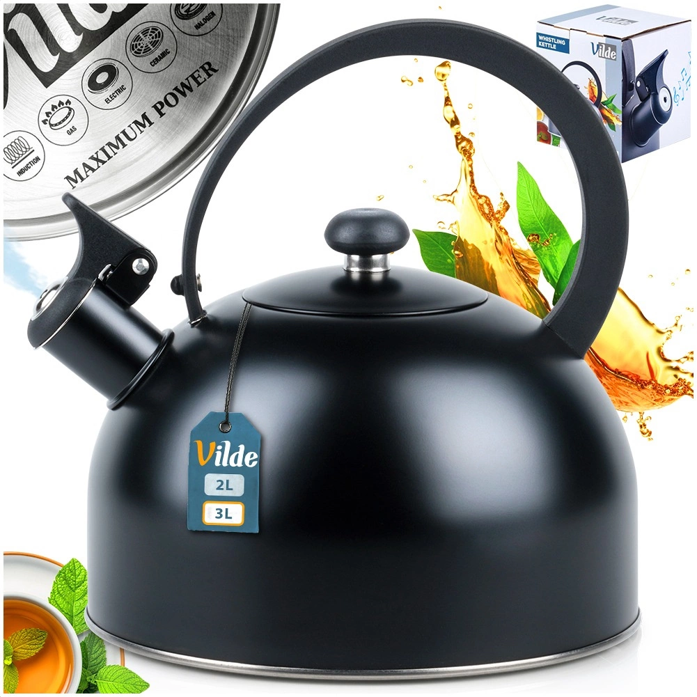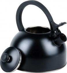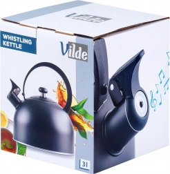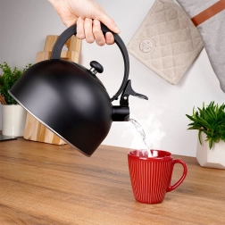 Elegantní pískací konvice z kvalitní nerezové oceli s objemem 3 l (užitný 2,3 l) v matně černé barvě. Disponuje akutermickým dnem pro rychlý ohřev, sklopným píšťalkovým uzávěrem a ergonomickým, tepelně odolným madlem. Vhodná na plyn, elektřinu, sklokeramiku i indukci.