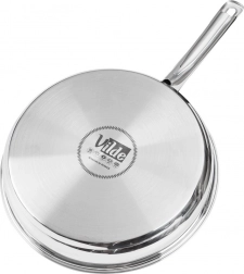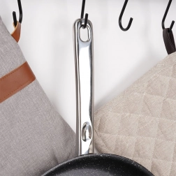 Speciálně navržené dokonale ploché akutermické dno se rychle zahřívá i na nízkém výkonu, čímž šetří energii a zkracuje čas přípravy. Ergonomická nerezová rukojeť nabízí bezpečný úchop a díky závěsnému oku pánev snadno uložíte. Údržba je bezstarostná – povrch se lehce čistí a pánev je vhodná do myčky.