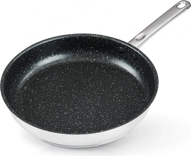 Tato designová pánev s granitovým nepřilnavým povrchem umožňuje vařit s minimem tuku, přičemž si suroviny zachovají svou přirozenou chuť i výživovou hodnotu. Masivní nerezové tělo výborně akumuluje a rovnoměrně rozvádí teplo, takže dosáhnete perfektních výsledků při smažení, dušení i restování.